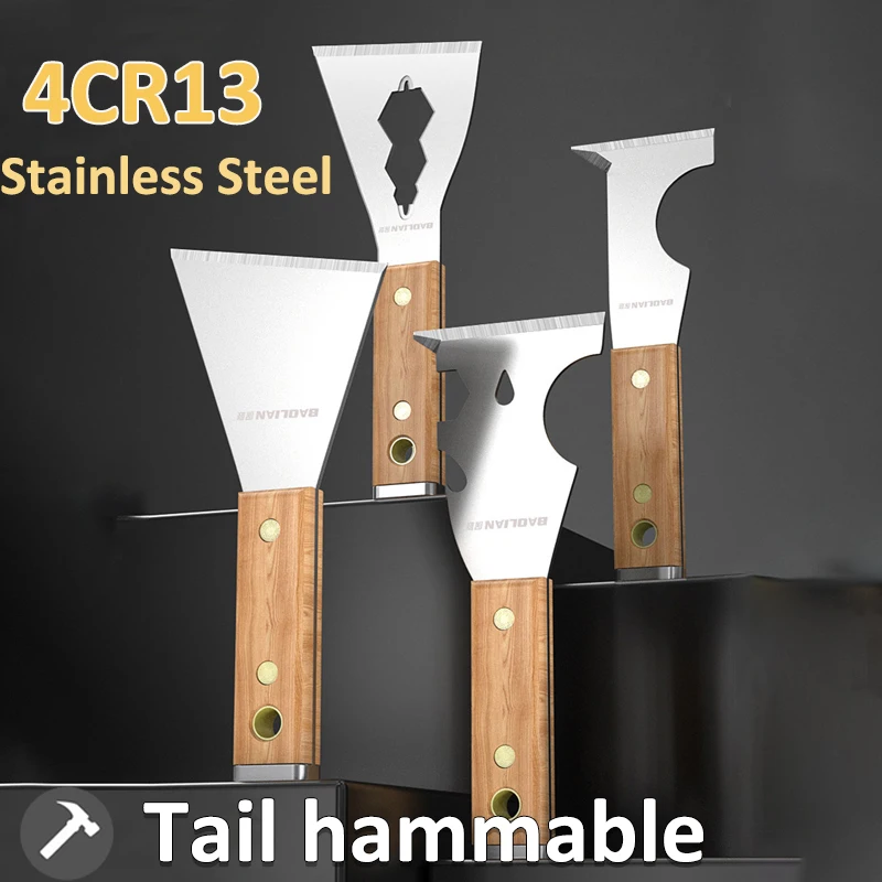1PCS Japanese Style Dust Scraper Multifunctional Stainless Steel Putty Spatula Shovel With Wooden Handle Home Wall Decor Tools