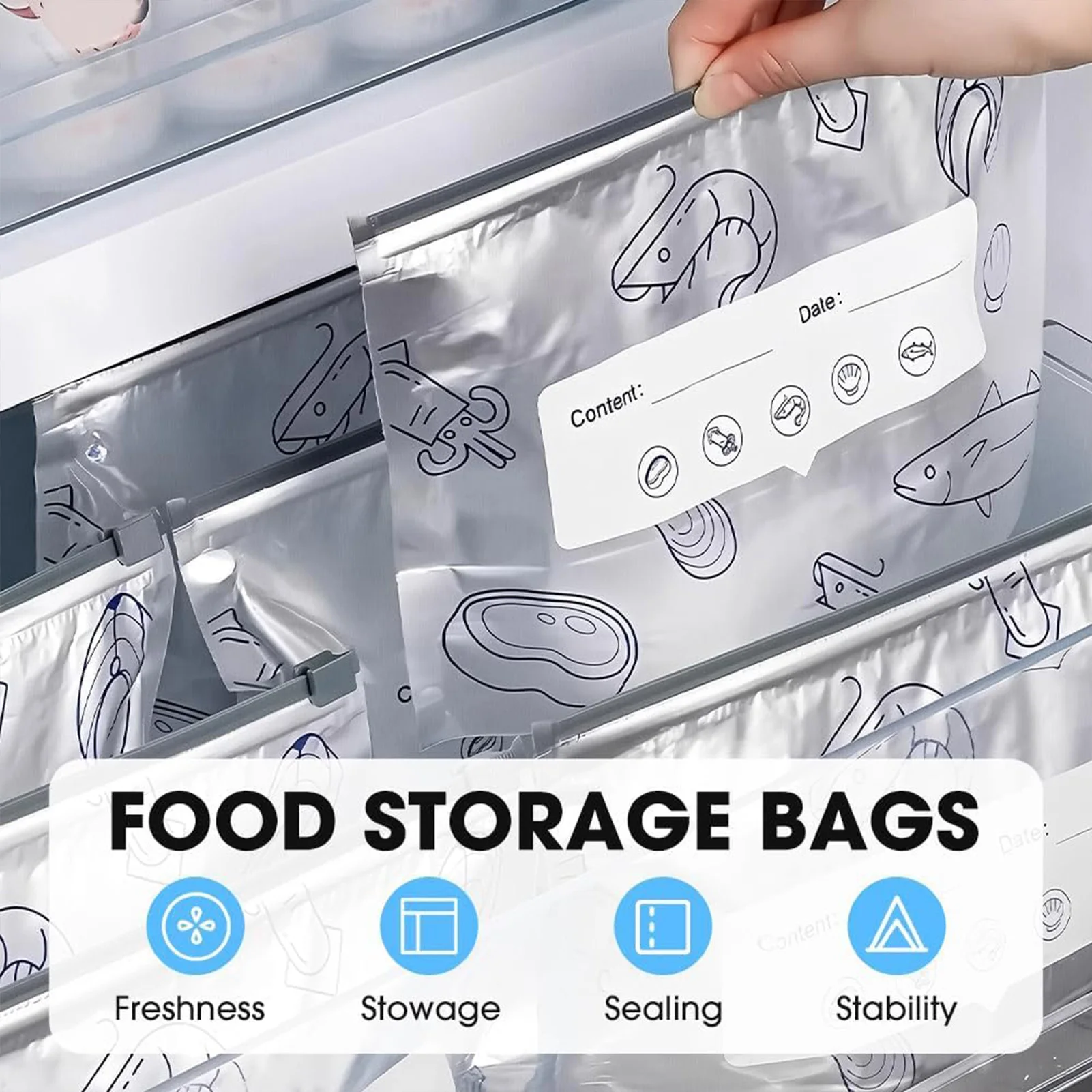 10Pcs Aluminum Foil Bags Reusable Food Grade Freezer Refrigerator Storage Bags Airtight Seal Freshness Lock for Meat, Vegetables