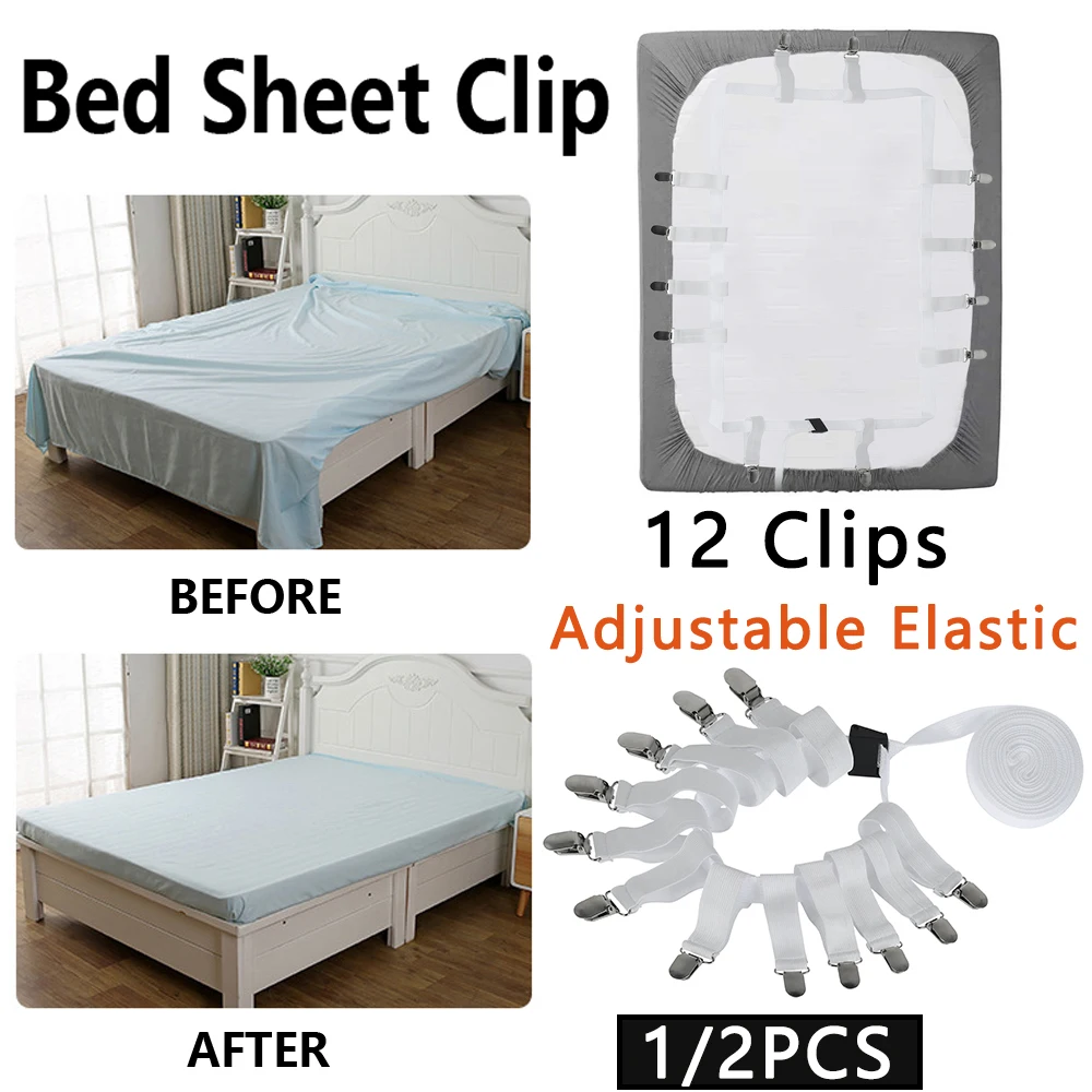 1/2Pcs Bed Sheet Holder 12 Clips Adjustable Elastic Mattress Clip Fasteners Cover Blankets Non-Slip Fixing Strap Grippers White  Read more