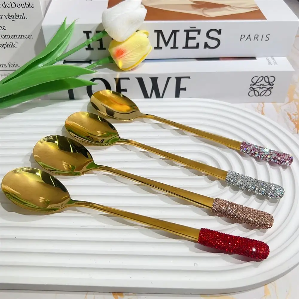 Bling Diamond Stainless Steel Tableware Set Luxury Chopsticks Sticks Fork Spoon Fruit Dessert Fork Metal Kitchen Dinnerware