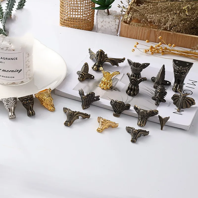 1PC Vintage Alloy Corner Tea Tray Foot Ashtray Four Side Foot Support Bottom Corner Decorative Cover Code Multi-style Feet