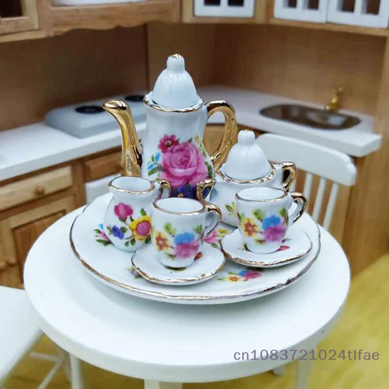 1Set 1:12 Dollhouse Miniature Porcelain Ceramic Tea Cup Set Tableware Kitchen Dollhouse Teapot DIY Toys