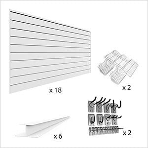 The Proslat Complete Storage Bundle is the ultimate bargain. Less expensive than if you bought it all individually, this bundle is a great way to organize any garage, mud room or anywhere in need of a good clean up.