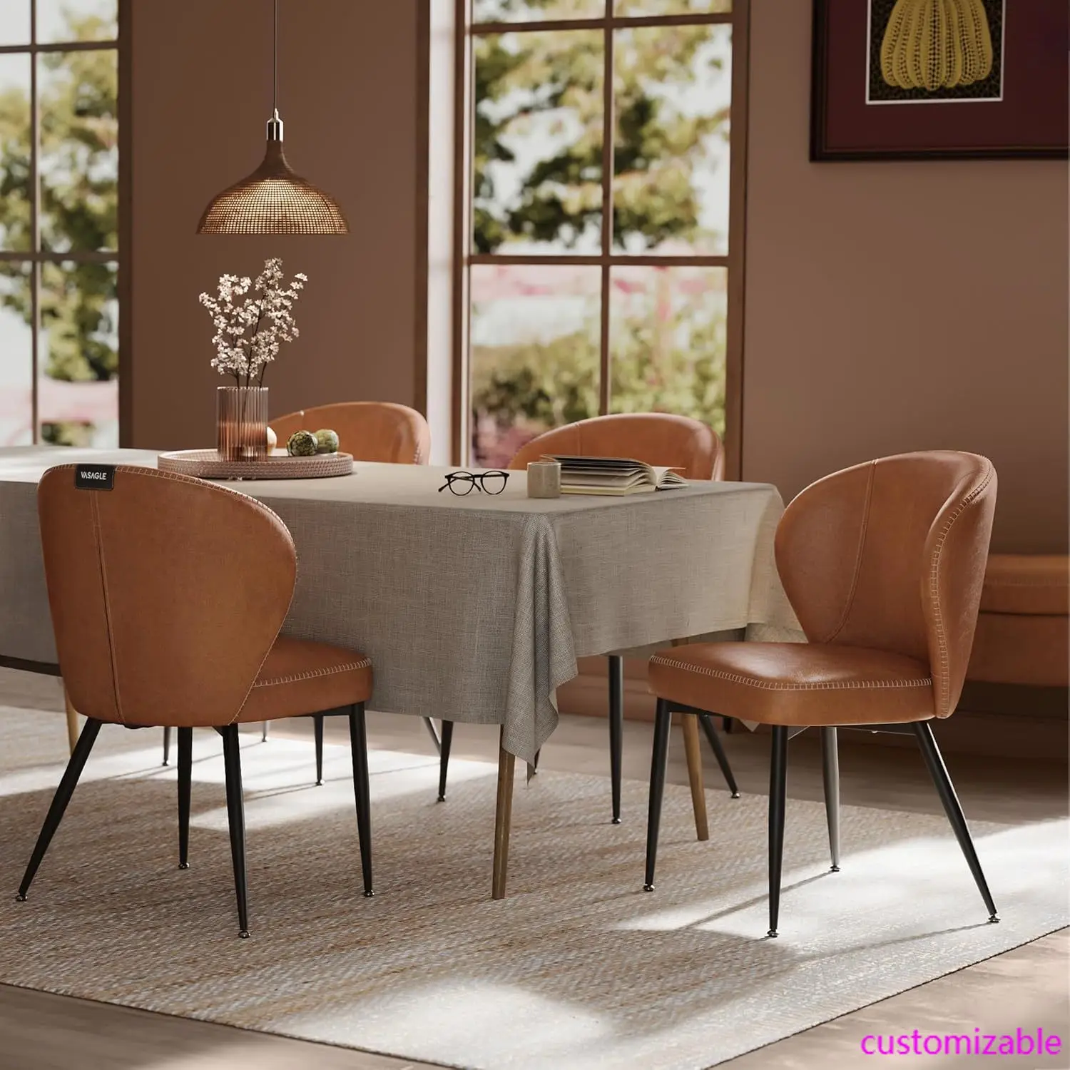 Modern Dining Chair Set of 2 Comfortable Faux Leather Upholstered Dining Chairs with Metal Legs and Thick Cushions