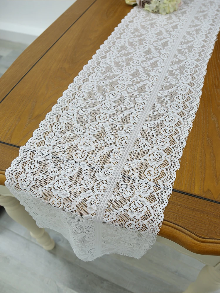 White small rose lace table flag with rustic romantic style suitable for living room dining table