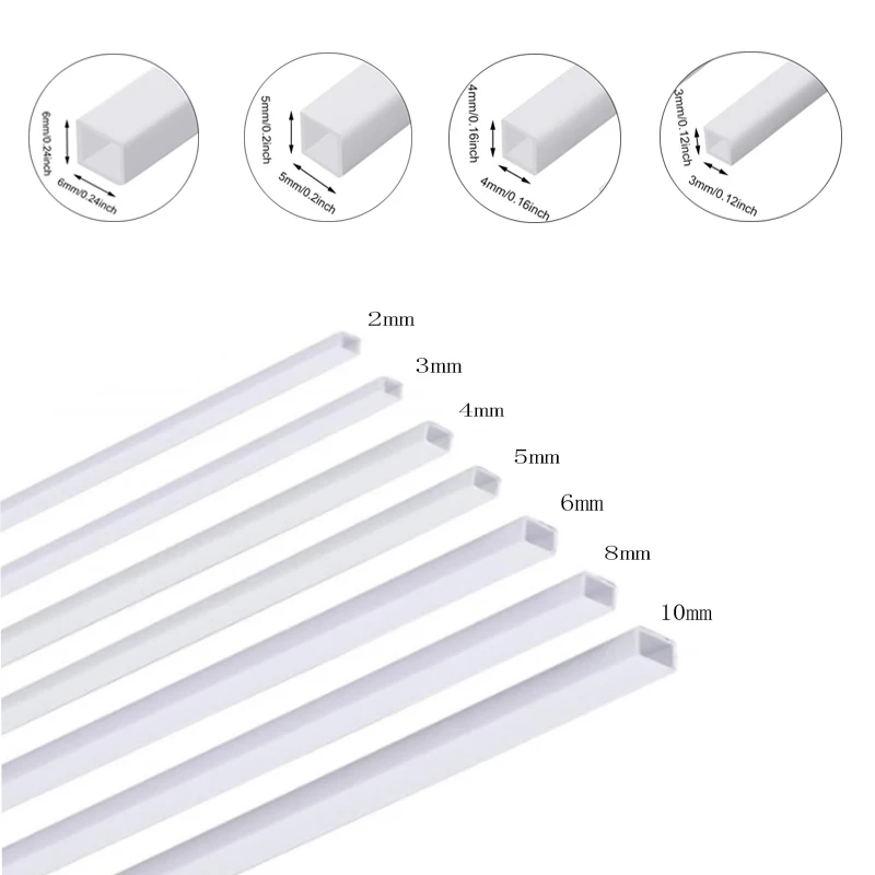 5/10pcs White ABS Square Plastic Pipe Tube Hollow Pipe for DIY Architecture and Building OD 2/3/4/5/6/8/10mm x Length 500mm