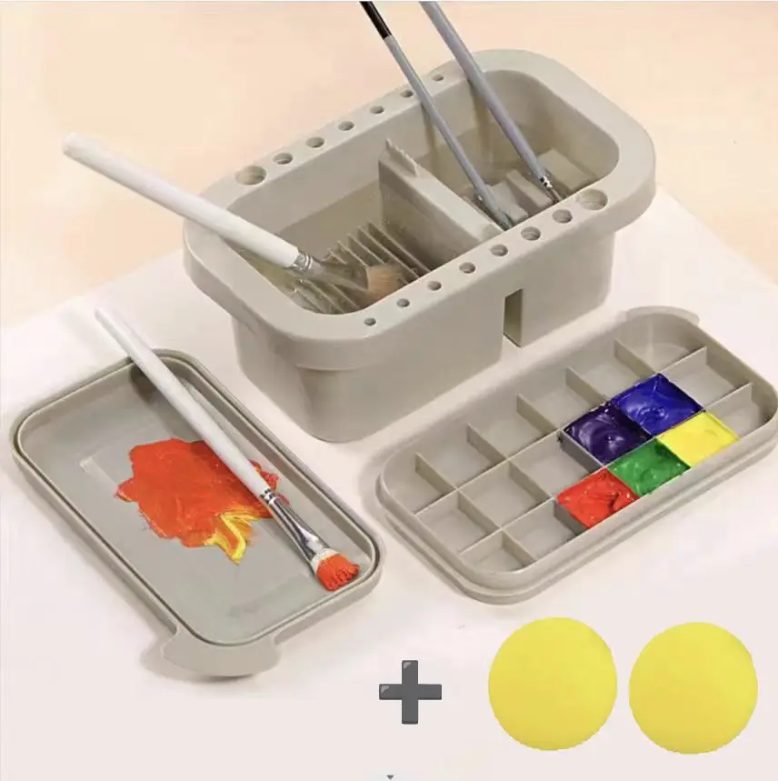 1 Set Paint Brush Cleaner Washer Multifunction Painting Brush Washing Bucket Tool Basin Holder Tray Palette Lid 2 Paint Sponges