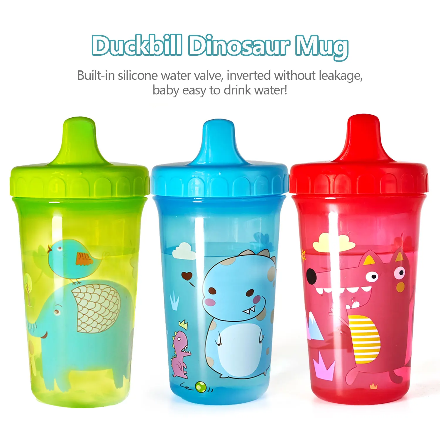 300ml Large Capacity Drop-proof Spill-proof Mug Duckbill Mug Cartoon Elephant Dinosaur Summer Mug Cold & Heat Resistant
