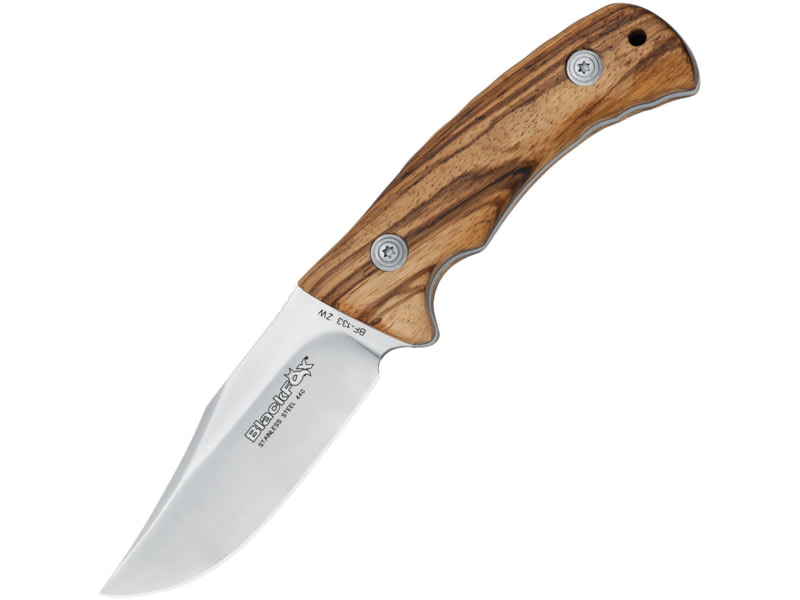 Black Fox Outdoor Fixed Blade Knife 4" satin finish 440 stainless clip point blade Zebra wood handle 02FX139