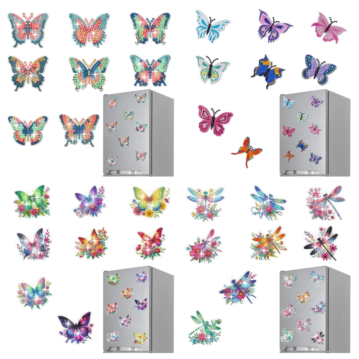 8 DIY Colorful butterfly pattern design diamond painting art set fridge magnets, magnetic rods, and storage cabinets