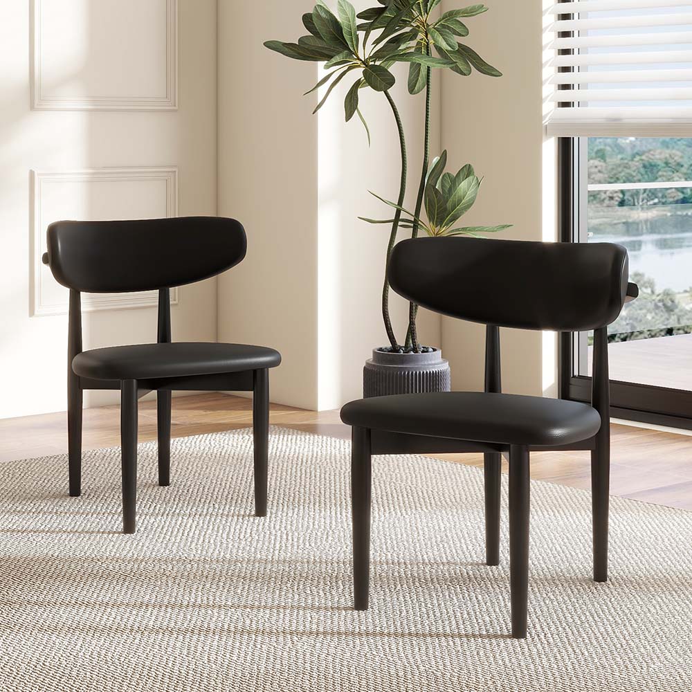 [Classic Design]Our dining chairs feature a classic combination of ash wood and PU leather exuding a rich Mid-Century Modern style. Their simple yet stylish design effortlessly complements various dining tables and diverse interior decor styles, ...
