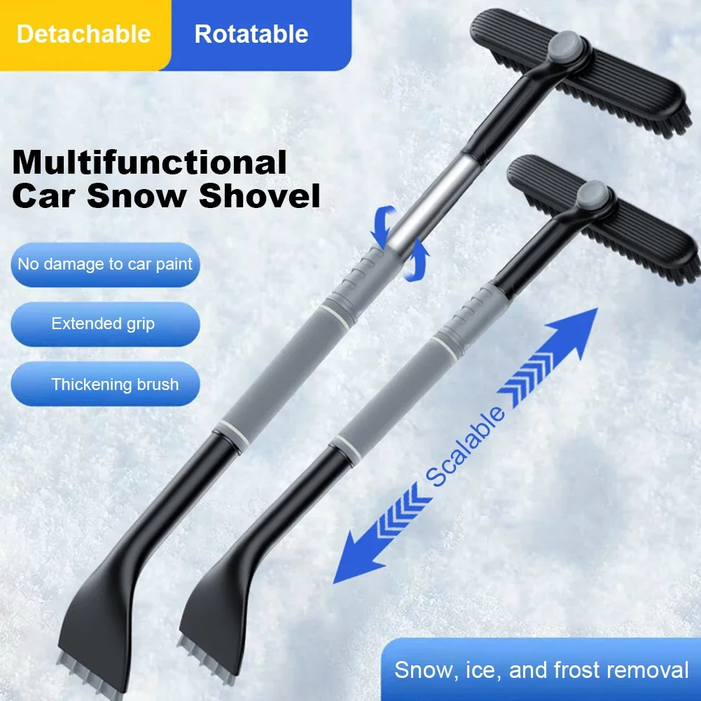 Universal Snow Shovel Brush Telescopic Car Glass Deicing Cleaning Tool 2-in-1 Detachable Snows Ice Scraper Quick Clean Wash Tool
