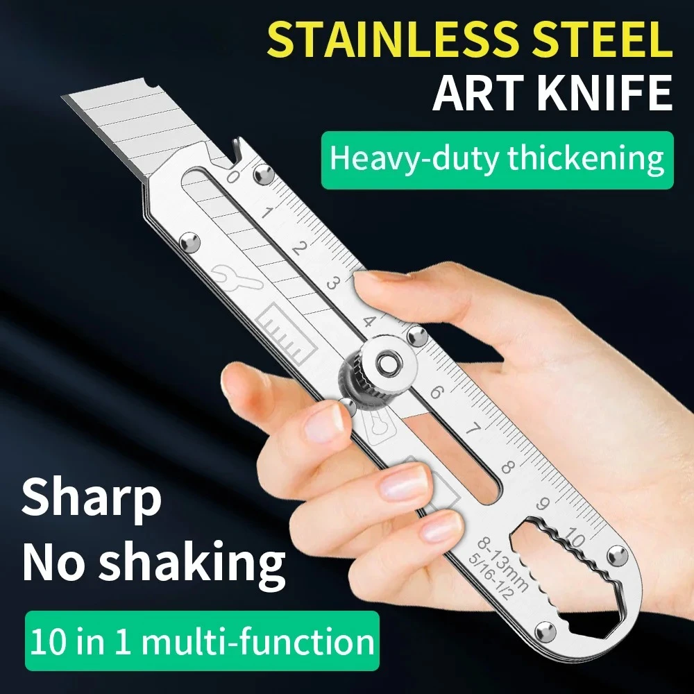 Utility Knife Box Cutter 8 In 1 Mutipurpose Stainless Steel Retractable Heavy Duty Waterproof Snap off Cutter Knife And Blades