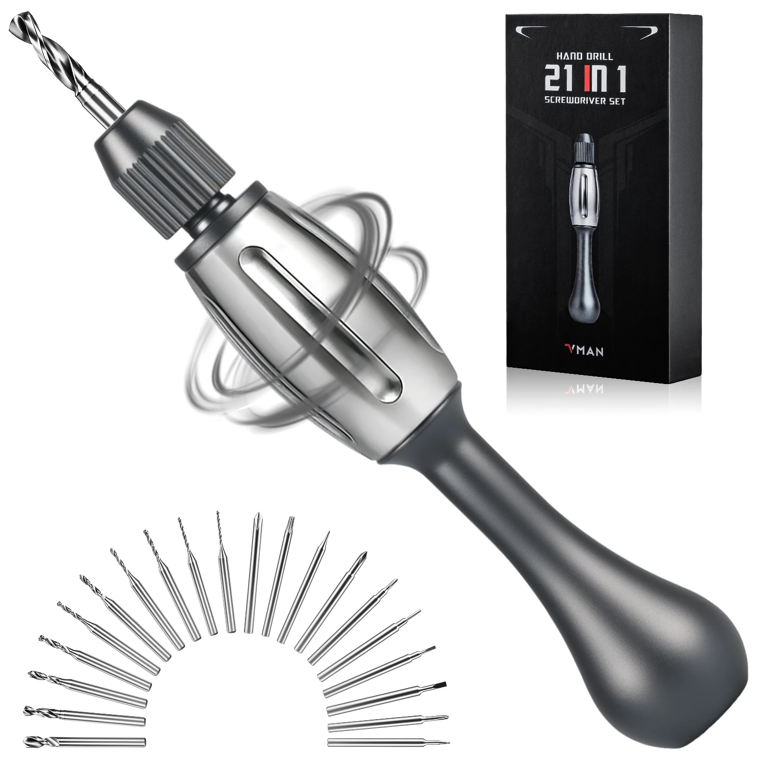 21in1 Screwdriver/Drill–DIY Tool: anti-slip handle S2 bits magnetic quick change dual bearings Drills jewelry resin wood plastic