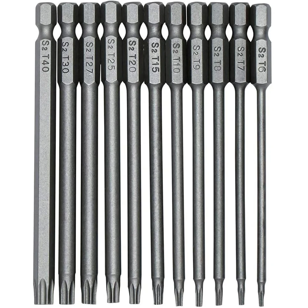 11Pcs Torx Screwdriver Bit Set 1/4 Inch Professional Magnetic Star S2 Steel Hex Shank Tough Torx Star Hex Security Security Set