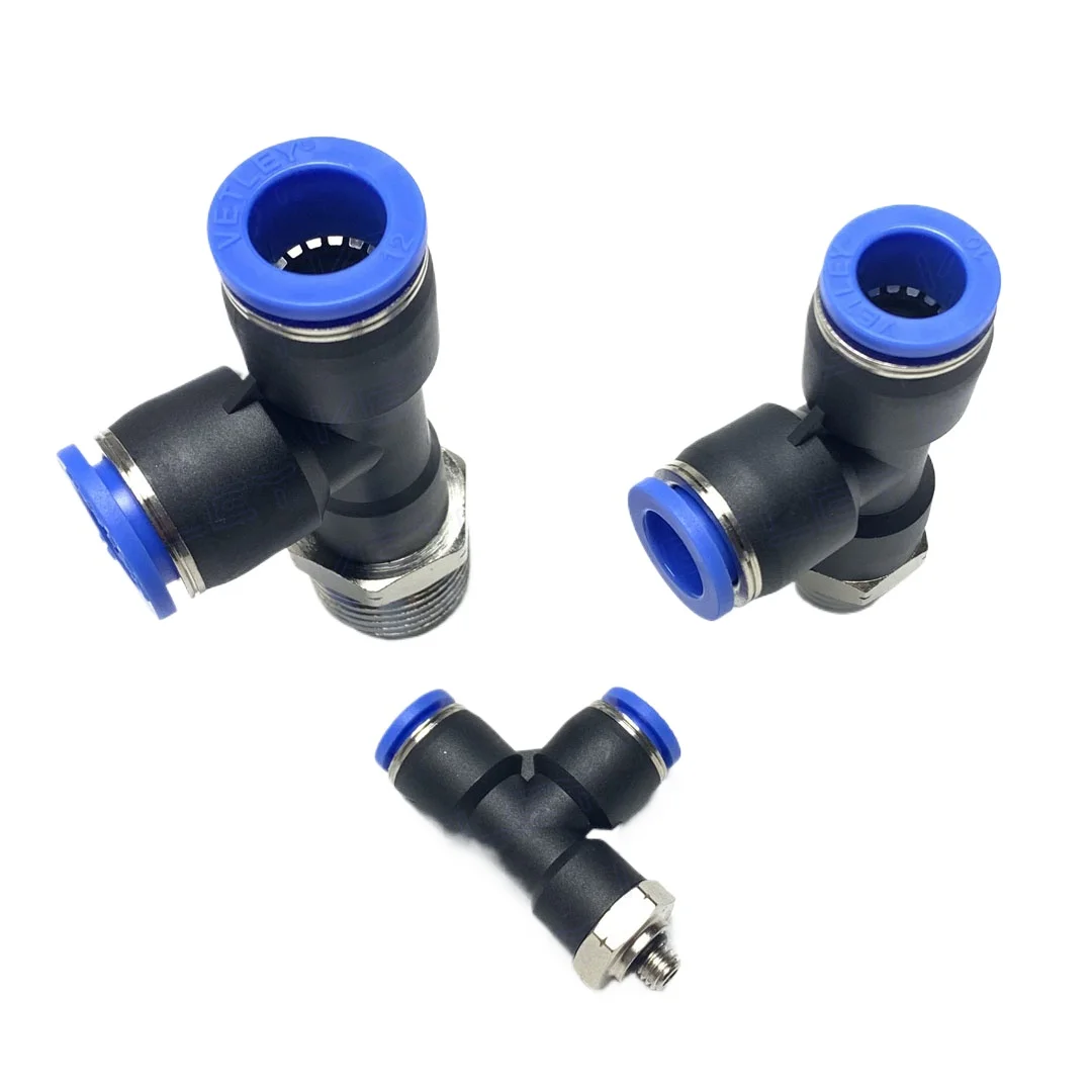 PST(PD) 4 6 8 10 12 mm Tube Push In Connect x 1/8" 1/4" 3/8" 1/2" BSP NPT Male Push In To Connect Tee 3 Way Brsss Pneumatic Air