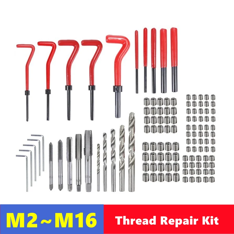 25/75/131pcs thread repair kit M2-M16, used to repair damaged thread monkey wrench Fried Dough Twists bit hand tool