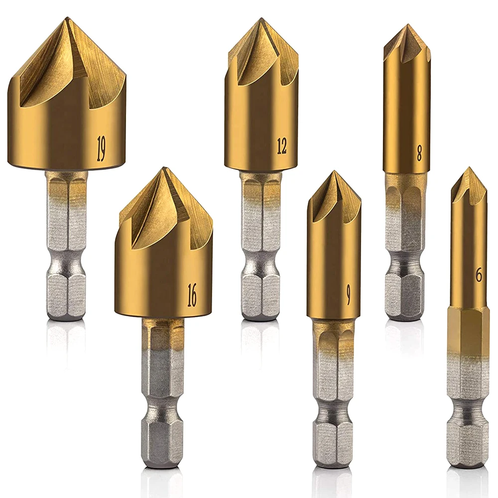 6pcs 6/8/9/12/16/19mm Hss Countersink Boring Drill Bit Set for Wood Metal Quick Change Drill Bit Tool Hex Chamfer Drill Tool Set  Read more