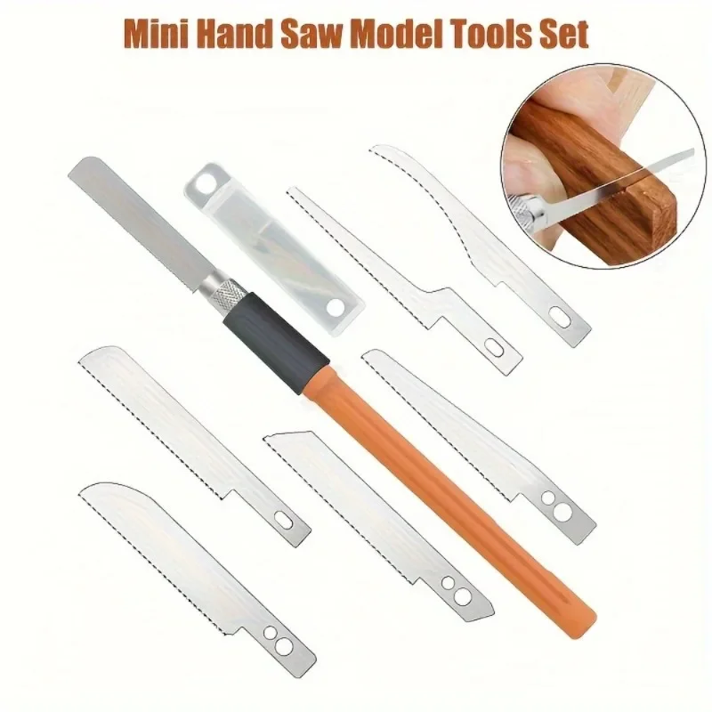 8-Piece Mini Hand Saw Model Craft Set DIY Precision Hobby Knife with Replaceable Steel Blades for Cutting Wood Crafts