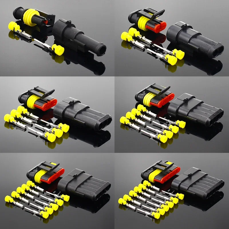 2-5sets Kit 2 pin 1/2/3/4/5/6 pins Way AMP Super seal Waterproof Electrical Wire Connector Plug for car waterproof connector