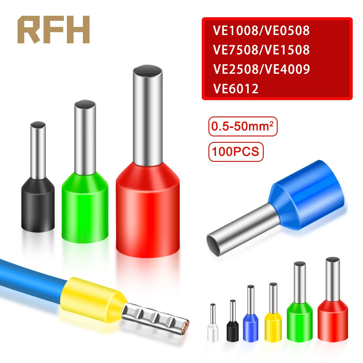 100pcs E0508 E7508 E1008 E1508 E2508 Insulated Ferrules Terminal Block Cord End Wire Connector Electrical Crimp Terminator  Read more