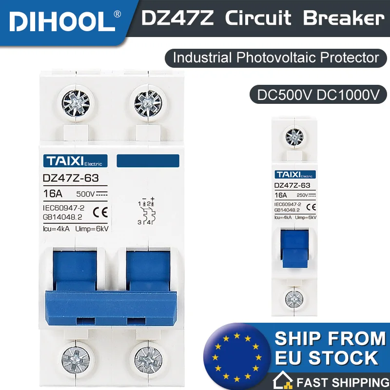 TAIXI Solar Photovoltaic DC Circuit Breaker PV Switch MCB DC250V 500V 1000V 16A 32A 40A 50A 63A Air Switch 100A 125A