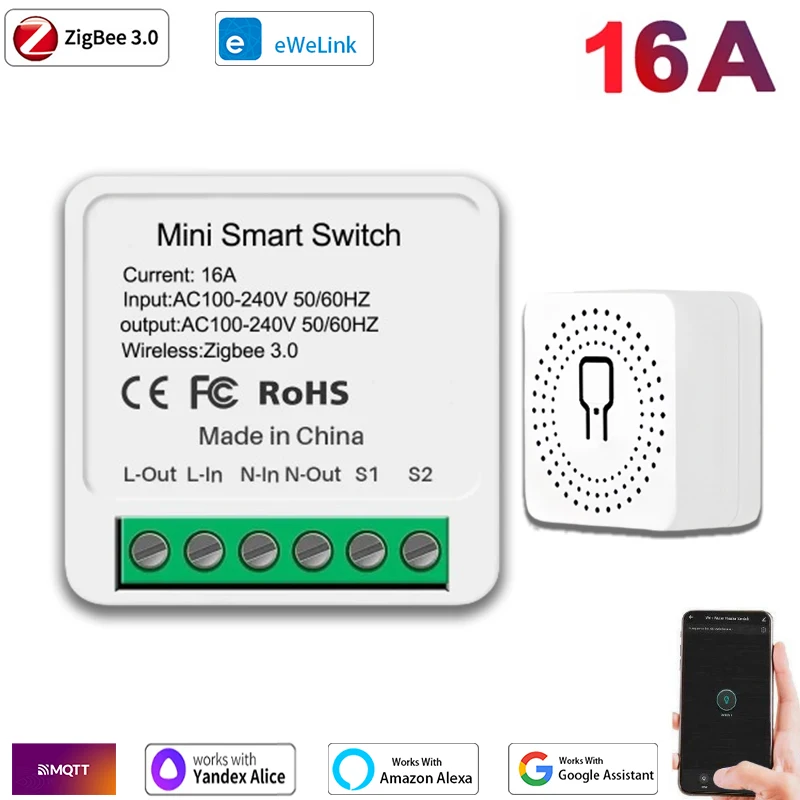16A EWelink Zigbee 3.0 Mini Smart DIY Switch 1 Way Control Smart Home Relay Automation Breaker Works With Alexa Google Home