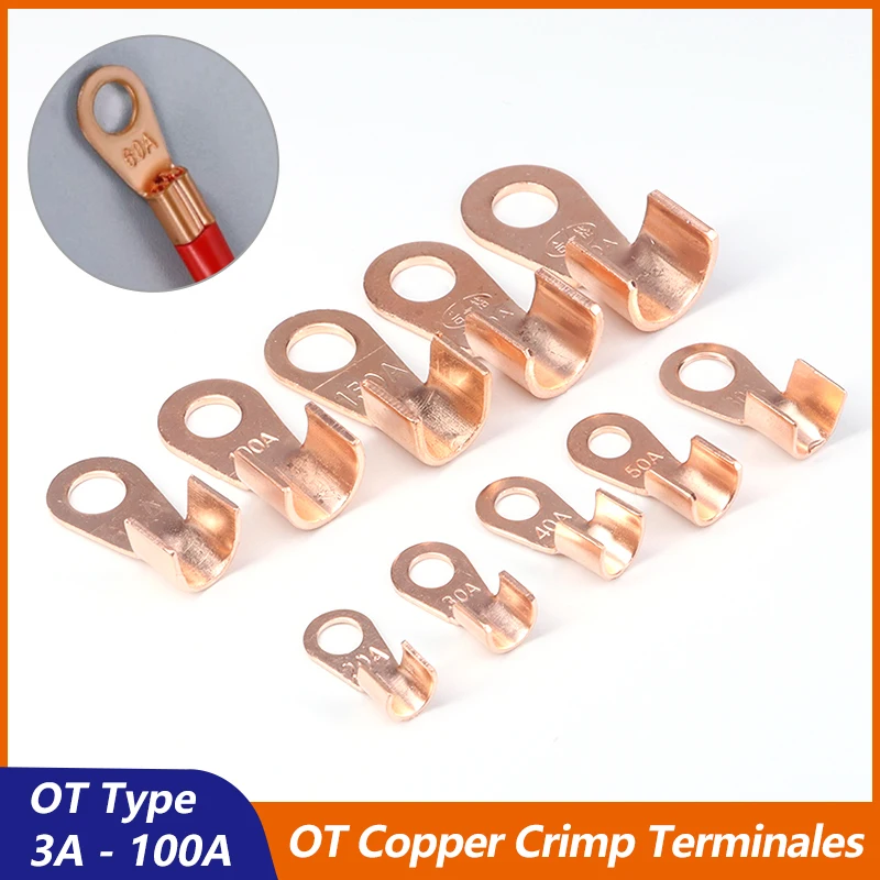OT 3/5/10/20/30/40/50/60/100A OT Copper Crimp Terminals M6 M8 Lug Cables Connector For Wire Electrical Switch Connection Cable