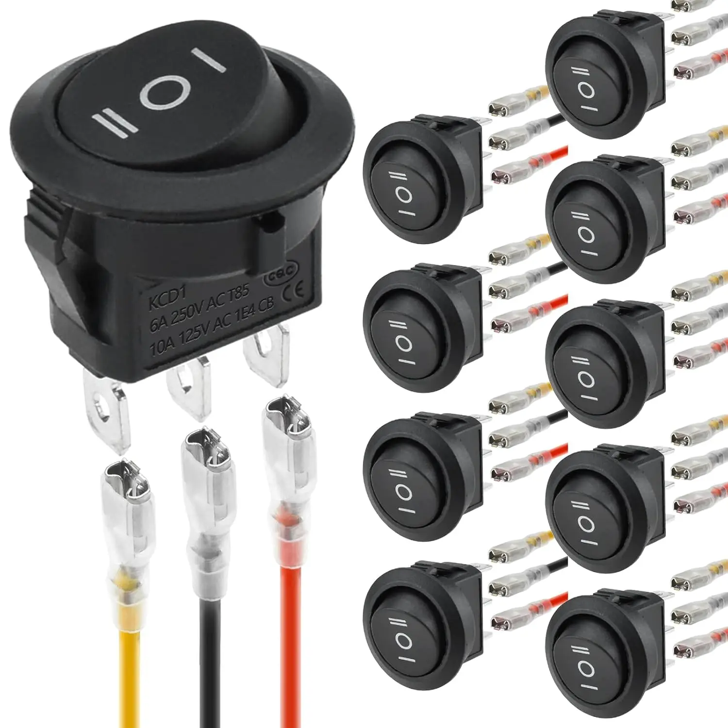 10 Pcs 3 Positions 3 Pins Round Rocker Switches with Wires 3A/250V 6A/125VAC 3 Way Toggle Switch for Car Stereo Marine Boat