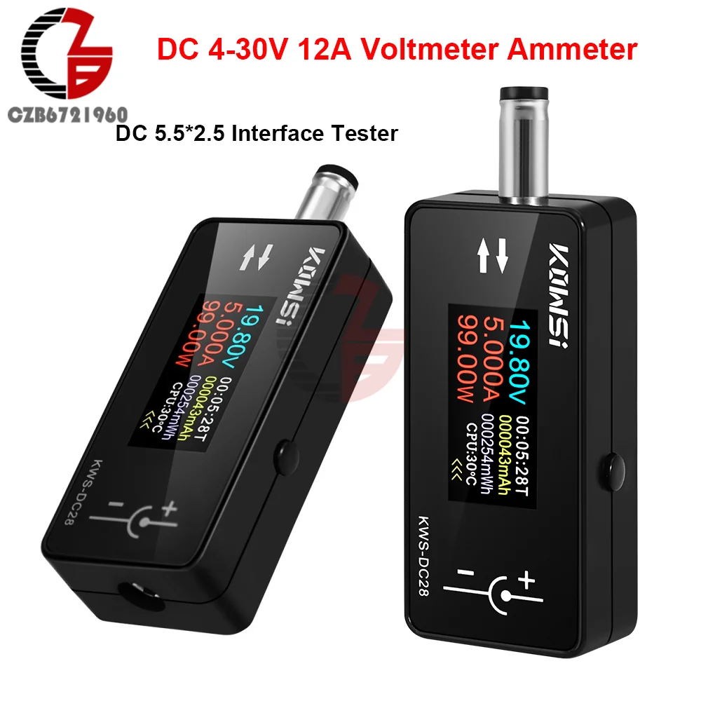 KWS-DC28 DC 5.5*2.5 Interface Tester Voltage Ammeter Power Meter TFT HD Digital Display Voltage Meter DC 4~30V 0~12A 5V 12V 24V