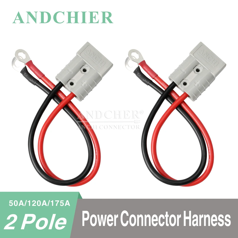 50A 120A 175A 350A 600V Battery Charging Wire 2 Pin Connector Forklift Plug 8/6/4/2AWG Soft Silicone Cable Power Connection Wire  Read more