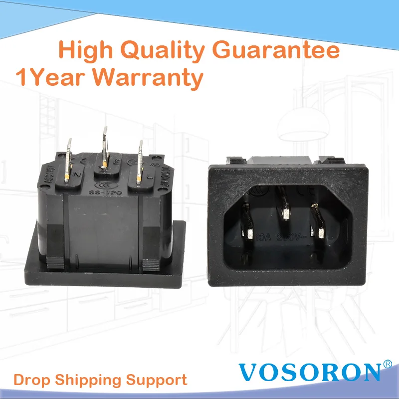 1PCS IEC 320 C14 Panel Mount Plug Adapter AC 250V 10A 3 Pins IEC Inlet Plug Power Connector Socket Straight