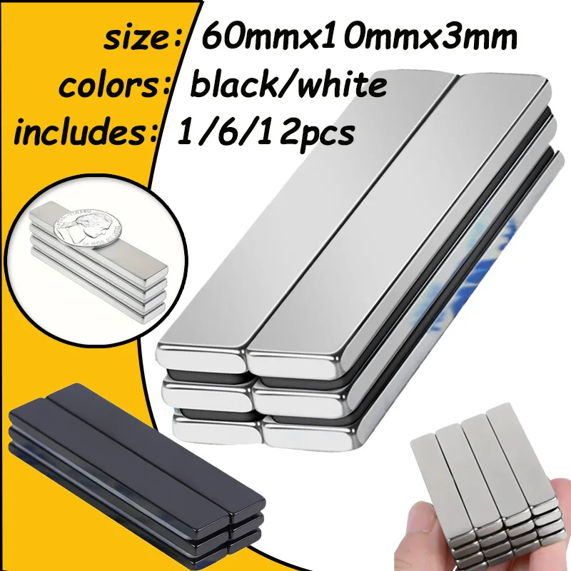 1/6/12pcs Rectangular Magnet 60x10x3mm Mini Magnets, Office Magnets, Can Replace Hooks, A Variety Of Quantities Specifications