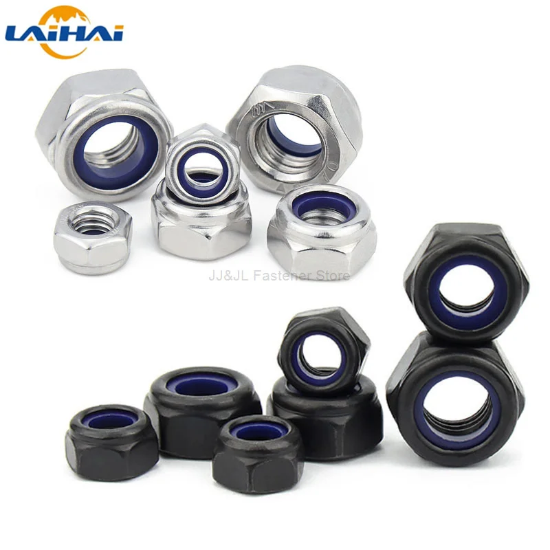 2/5/25pcs M2 M2.5 M3 M4 M5 M6 M8 M10 M12 M16 304 Stainless Steel Black Hex Nylon Insert Lock Nut Self-locking Nylock Nut Locknut