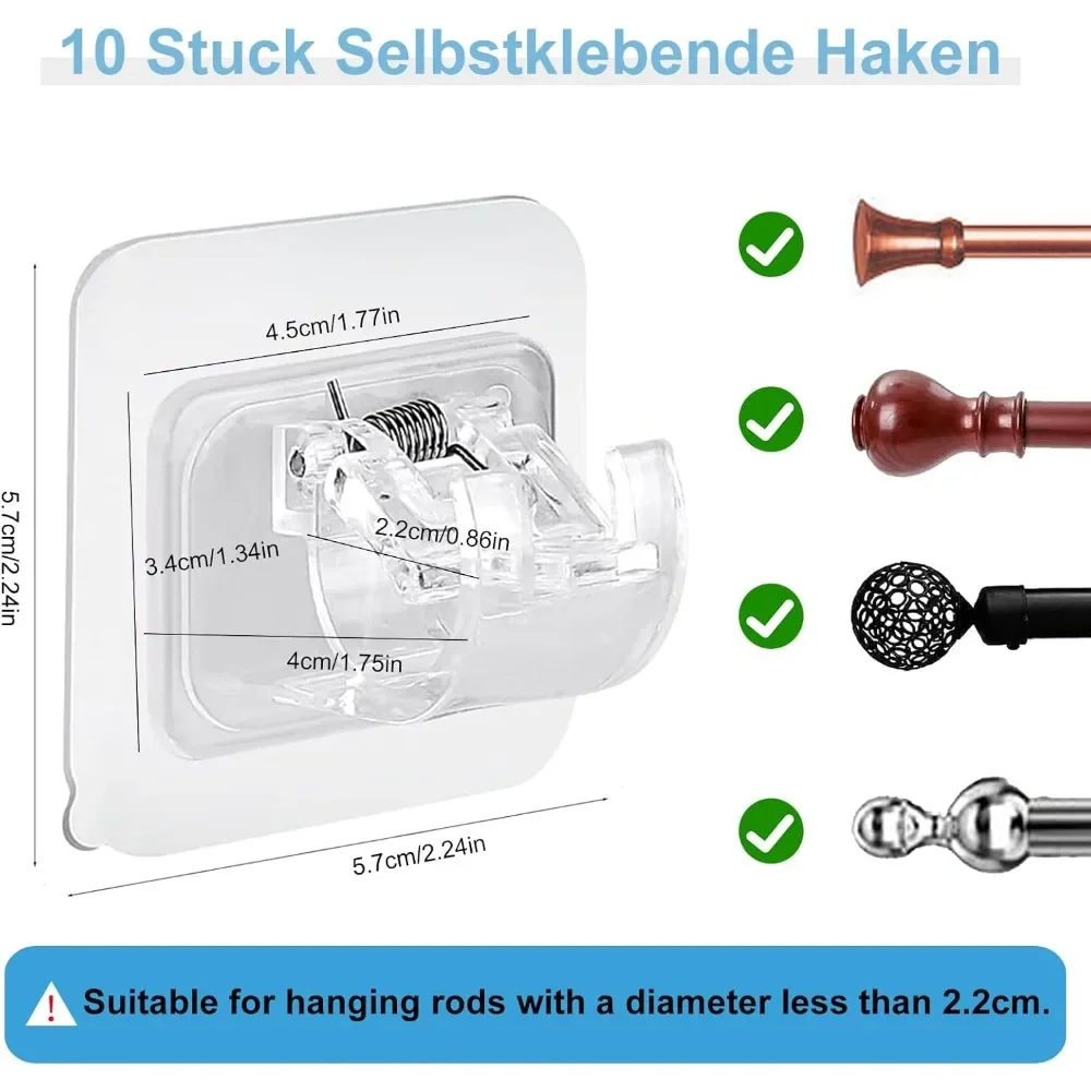 For 30 Pcs Self-adhesive Curtain Rod Holder Nailless Adjustable Rod Holder Curtain Hook Holder Towel Rod Hook New