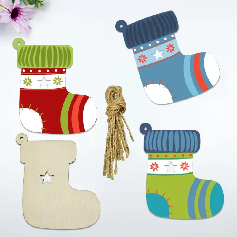 10PCS Wooden Christmas Stocking DIY Craft Kit, Unfinished Hollow Design, Holiday Party Decoration, Tree Ornament