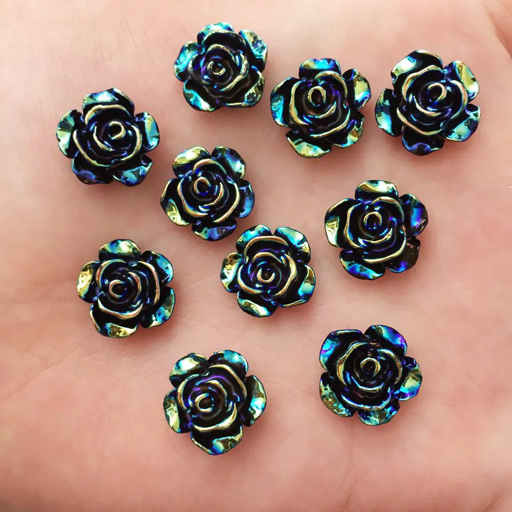 40 Pcs AB Resin 12mm Flower Flat back stone scrapbook DIY Wedding applique ornament Crafts SF534