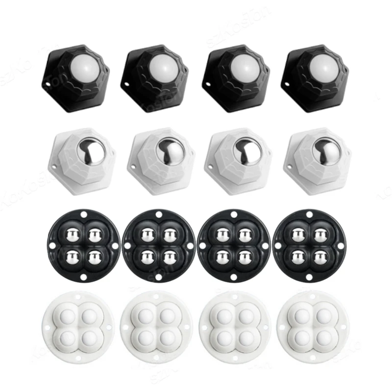 4pcs Moving Roller Kit Heavy Duty Self Adhesive Pulley Wheels 360 Degree Rotation Universal for Trash Can Storage Box Furniture