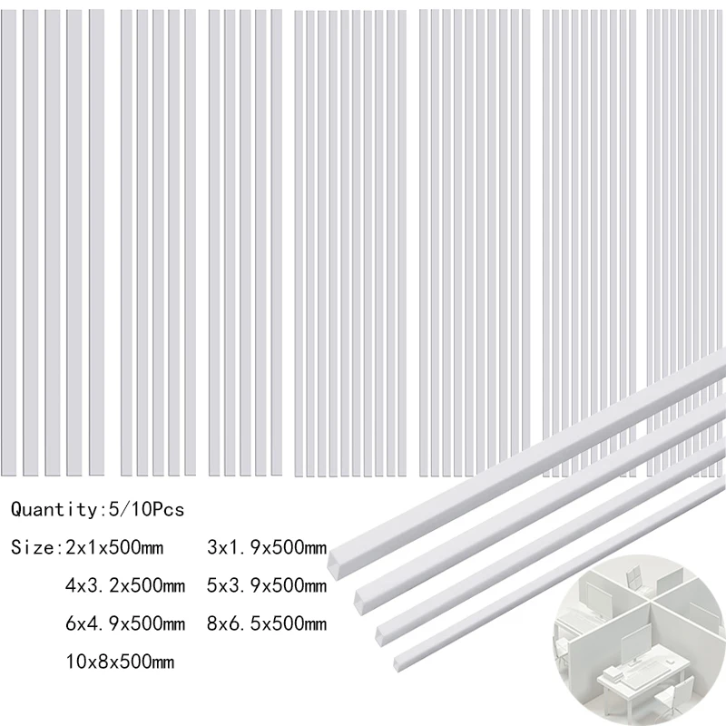 5/10pcs ABS Square White Plastic Pipe Tube Hollow Pipe Perfect for DIY house sand table model building stick tool