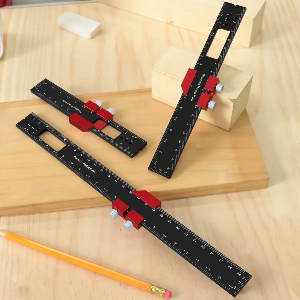 Woodworking Precision Pocket Ruler Aluminum Slide Ruler Inch And Metric T-Type Scribing Ruler Square Layout Tool W/ Slide Stops