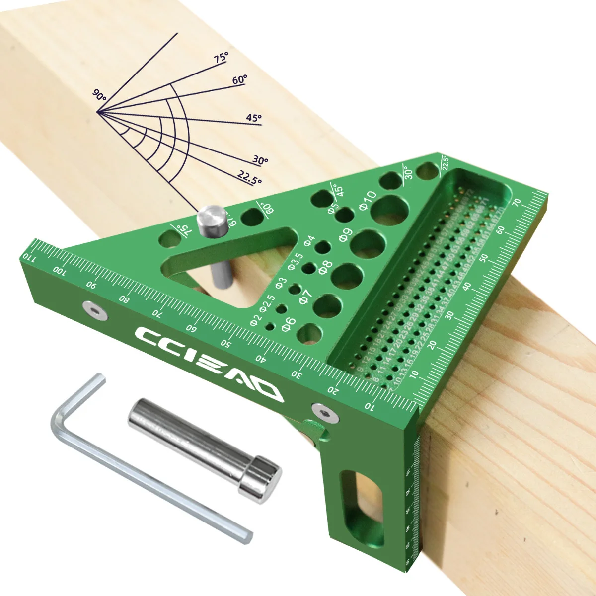 Carpenter Square 3D Multi Angle Measuring Ruler, Hole Position High Precision 22.5°-90° Aluminum Alloy Woodworking Square Ruler