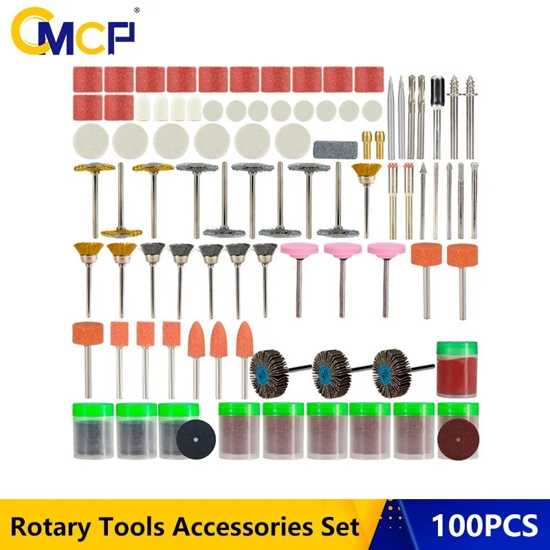 CMCP 100pcs Abrasive Tool Rotary Tool Accessory Set Mini Drill Bit Kit Sanding Polishing Cutting Disc Engraving Heads for Dremel