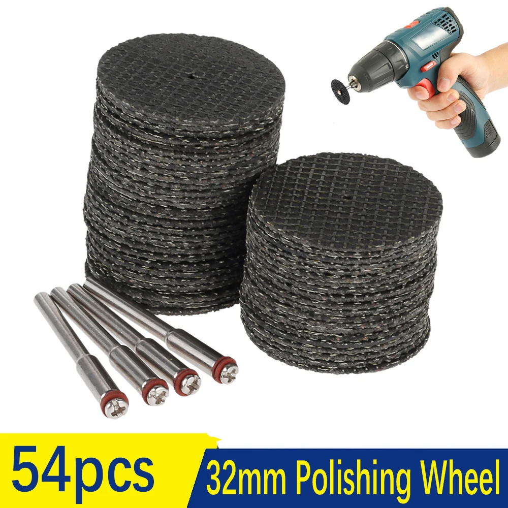 54pcs Abrasive Cutting Disc 32mm With Mandrels Grinding Wheels For Dremel Accesories Metal Cutting Rotary Tool Saw Blade