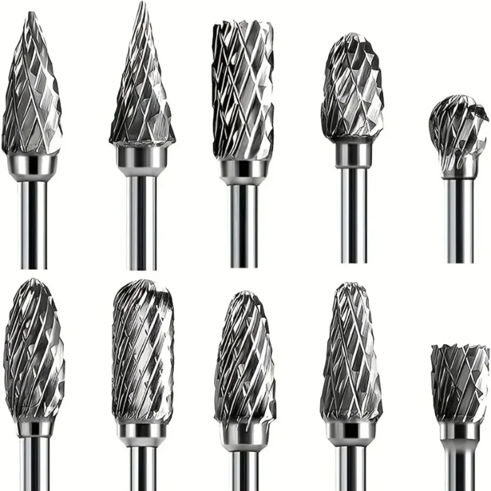 Carbide Burr Set Compatible with Dremel 1/8" Shank 10PCS Die Grinder Rotary Tool Rasp Bits Wood Metal Carving Electric Grinding