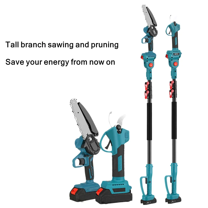 Rechargeable Lithium Electric Chain Saw Garden Outdoor Single-Hand Saw Retractable High Branch Shears High Branch Saw Pole Set
