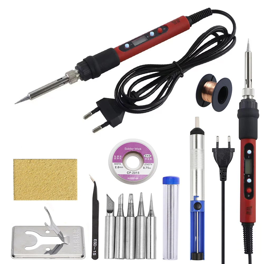 Electric Soldering Iron Kits 220V 60W EU Plug Temperature Adjustable Welding Gun Repair Tool with Tin Soder Wire 5 Iron Tips