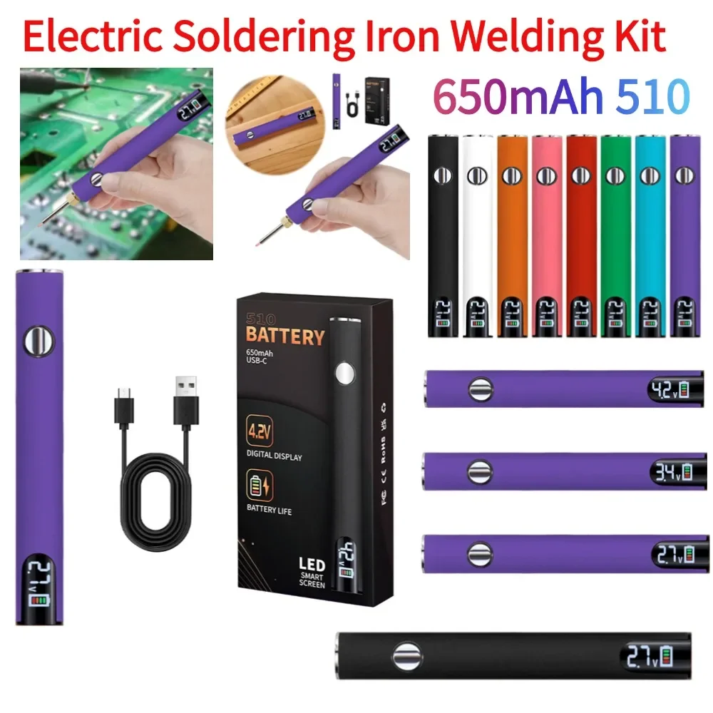 650mAh 510 Thread Battery Pen Solder Iron Shaped Battery Set Adjustable Voltage Portable Electric Soldering Iron Welding Kit