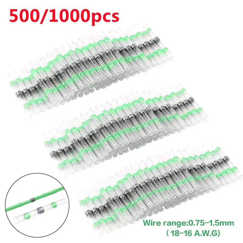 100/1000pcs Green Solder Seal Wire Connectors Waterproof Heat Shrink Butt Connector AWG18-16 Insulated Cable Splice Terminals