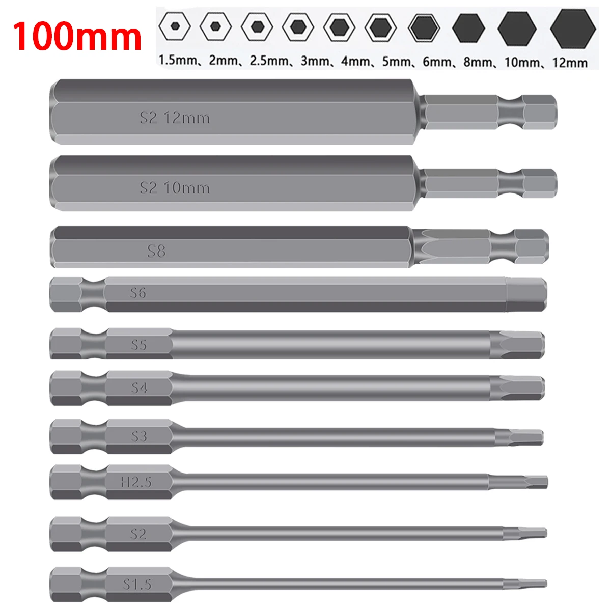 10Pcs 1/4" Hex Bits Driver Tamper Proof Security Drill Magnetic Bit Set Torx Screwdriver Flat Head High Quality 100mm