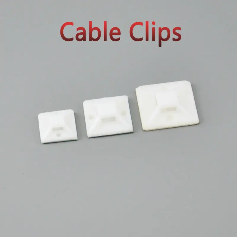 100pcs Self Adhesive Cable Tie Mounts 20*20 Car Wire Tie Clips Flat Holder Fixer Organizer Drop Adhesive Clamp White Black  Read more